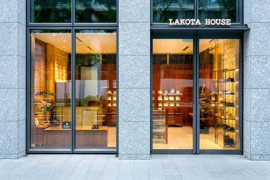 2025年8月に高層ランドマークの1階に移転オープン。イギリス産の石壁やベルギー産のレンガなどの自然素材を多用した内装や、ラコタハウスを象徴する円形ソファなど、リラックスして革製品と向き合えるサロンのような空間となっています。熟練のシューフィッターによる採寸では、きめ細かに助言がもらえます。履きこまれたエイジングサンプルの展示スペース(ミュージアム)は見所です。