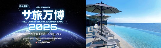 日本航空株式会社が主催する「サ旅万博2025」は、日本全国47都道府県の「サ旅(サウナ旅)」が一堂に集結する、地域体験型・サウナイベントです。会場となるアクアイグニス淡路島には複数の「サ旅・地域パビリオン」と称した大型テントサウナが設営され、47都道府県の”ご当地サウナ”体験を一堂に集約・再現。まるで日本全国を「サ旅」しているような初めての体験ができる、これまでにない地域体験型サウナイベントです。