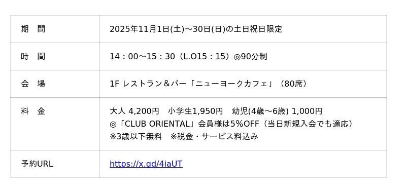 オリエンタルホテル広島(所在地:広島県広島市中区田中町6-10)では、1Fレストラン&バー「ニューヨークカフェ」にて、『ショコラスイーツブッフェ2025 ~秋のショコラ交響曲~』を、2025年11月1日(土)~30日(日)の土日祝日のみ12日間限定で開催いたします。