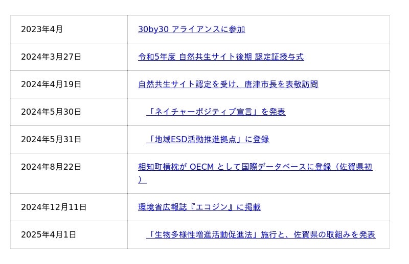 ネイチャーポジティブ自然共生サイトのあゆみ