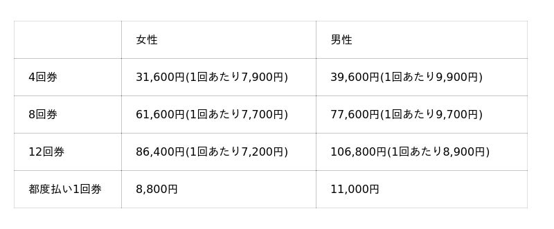 パーソナルレッスン料金
