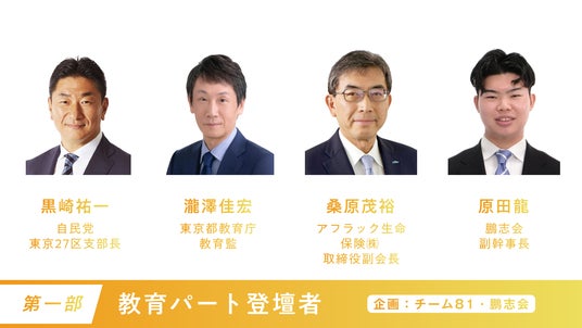 そんな日本の未来の大きな課題に、各界で実績をもつ社会人有志チーム・チーム81と、政治サークル鵬志会がタッグを組み、教育分野と環境分野で活躍する講師計6名をお招きします。