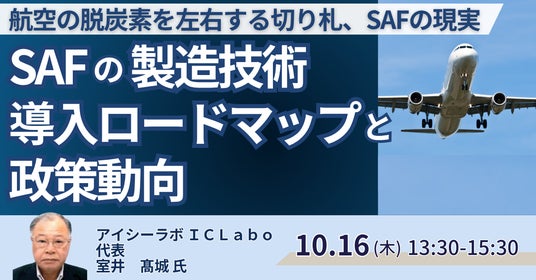 JPI(日本計画研究所)は、アイシーラボ ICLabo 代表 室井 高城 氏を招聘し、SAFの製造技術・導入ロードマップと政策動向について詳説いただくセミナーを開催します。