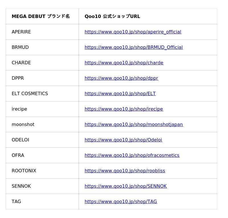 ■メガデビュー 展示ブランド:12ブランド(※数字ABC順)