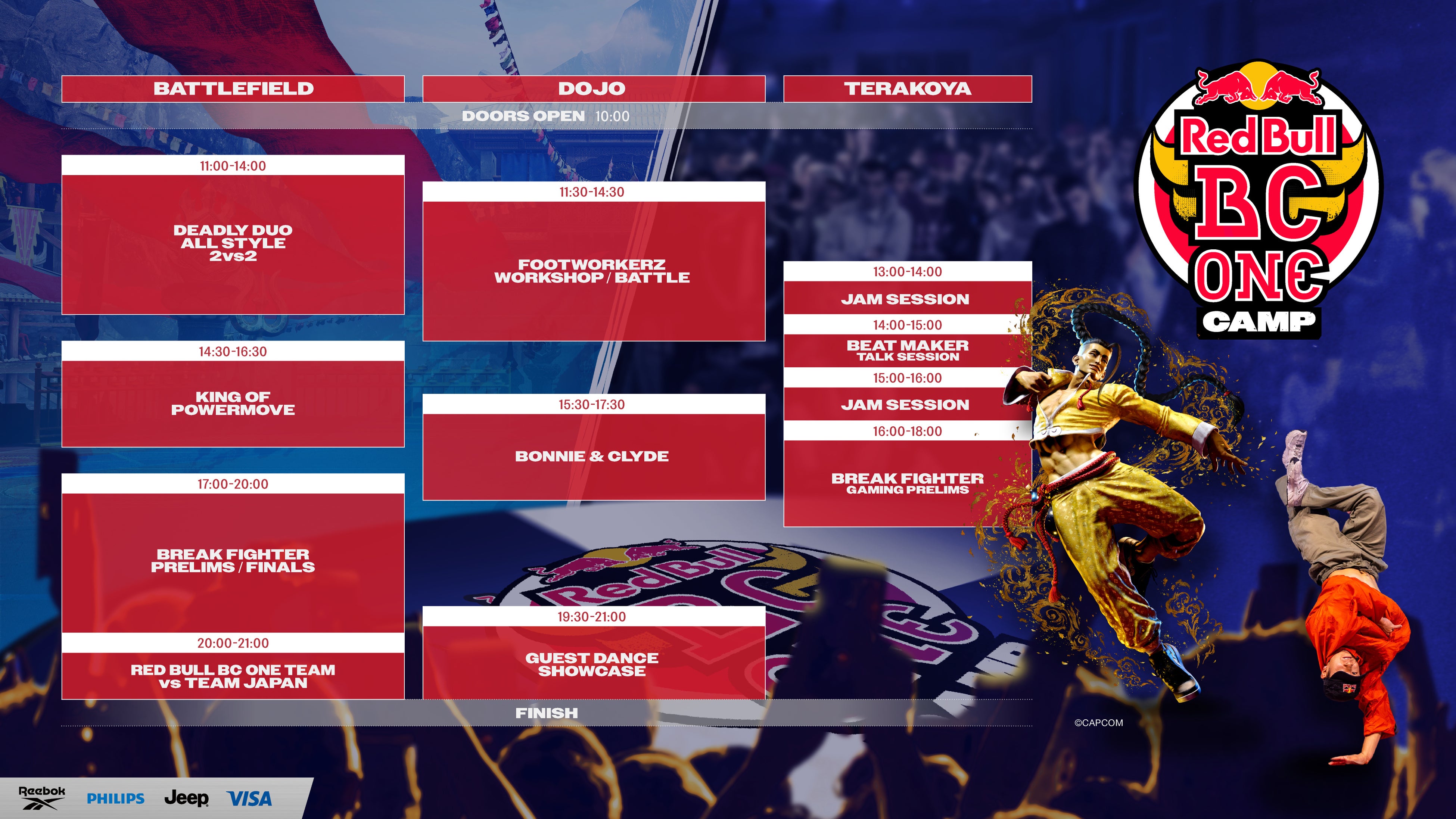 ブレイカー、ゲーマーそれぞれ別で予選は実施。決勝進出する5組を決定。決勝からはペアとなり、ゲスト3組を交えたトップ8でのトーナメント戦。第1バトルは「ストリートファイター6」で対決し、第2バトルはブレイキンで対決。勝敗がつかなかった場合は、ブレイカー同士が「ストリートファイター6」で決着を付ける。