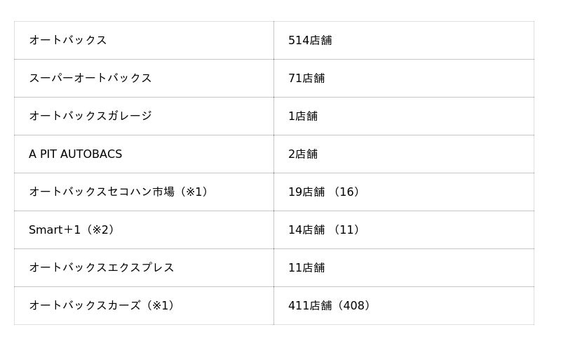 ご参考:オートバックスグループ国内店舗数 計1,043店舗