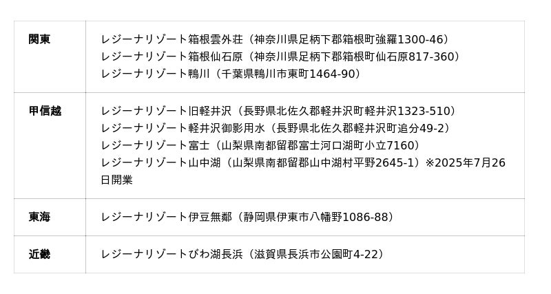 レジーナリゾート施設一覧