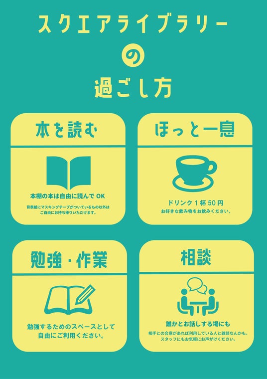 スクエアライブラリーはどなたでもお立ち寄りいただける場所になっています。