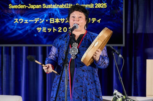 登壇者には、スウェーデンのエリック・スロットネル民生大臣、IKEA Chief Sustainability Officer のカレン・フルーグ氏、そしてスウェーデン北部サーミ地域出身のアーティストのサーラ・アインナク氏などが名を連ねました。特に、アインナク氏によるサーミ民族の伝統歌唱「ヨイク」に電子音響や現代的アレンジを融合させ、音楽と映像を組み合わせたパフォーマンスは、サミット全体に強い印象を残し、参加者に持続可能な未来のイメージを心に響く形で訴えかける内容となりました。
