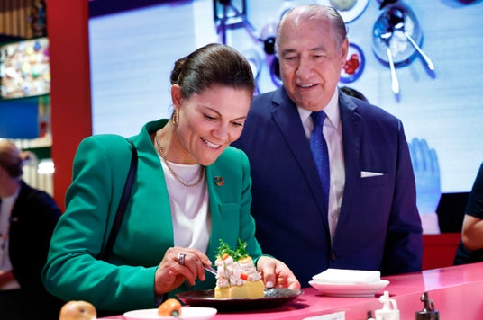 ペルー料理を召し上がるスウェーデン王国の皇太子殿下と、隣はロベルト・セミナリオ駐日ペルー共和国特命全権大使
