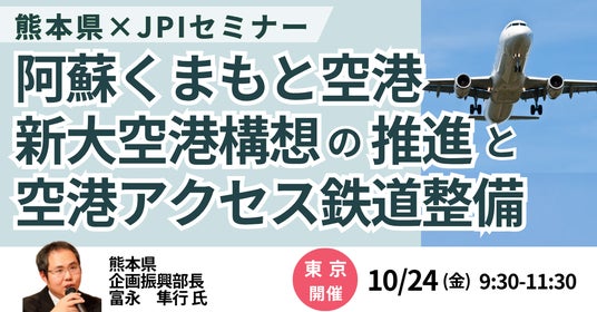 JPI(日本計画研究所)は、熊本県 企画振興部長 富永 隼行 氏を招聘し、阿蘇くまもと空港・新大空港構想の推進と空港アクセス鉄道整備について詳説いただくセミナーを開催します。