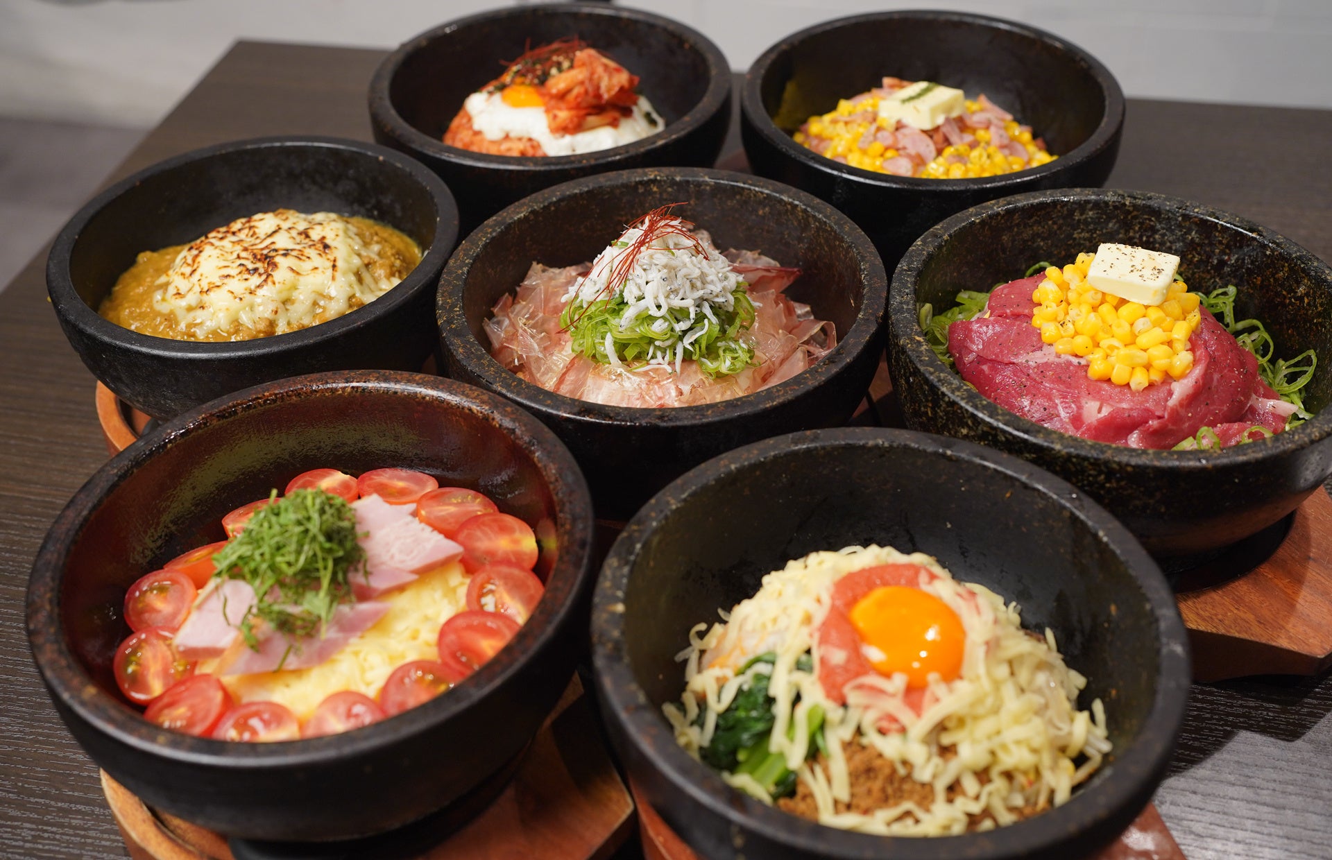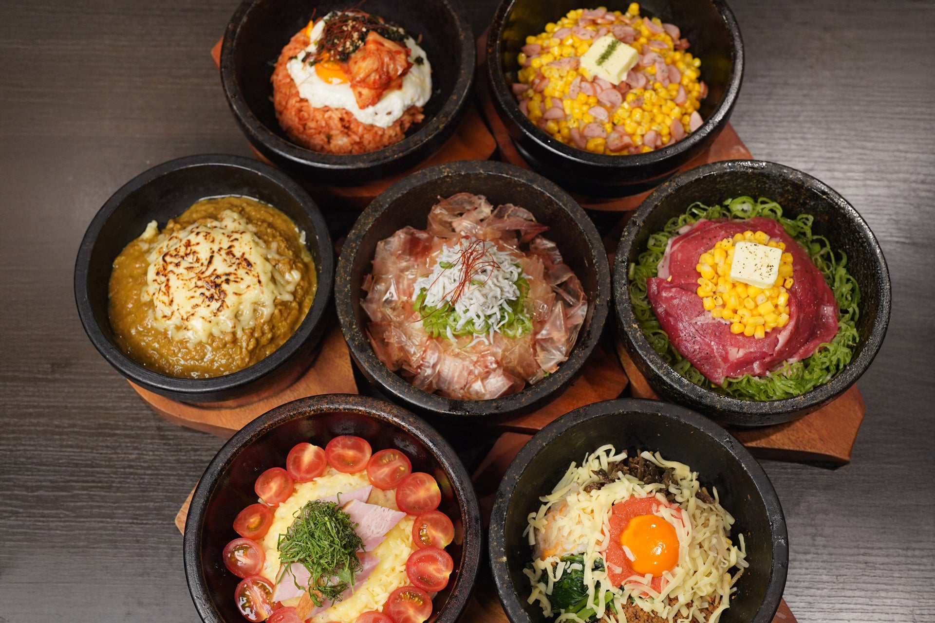 定番ビビンバ、明太チーズ、トマトチーズベーコン、ガーリックチャーハン、和風ネギしらす、キムチチャーハン、コーンバター、チーズカレー