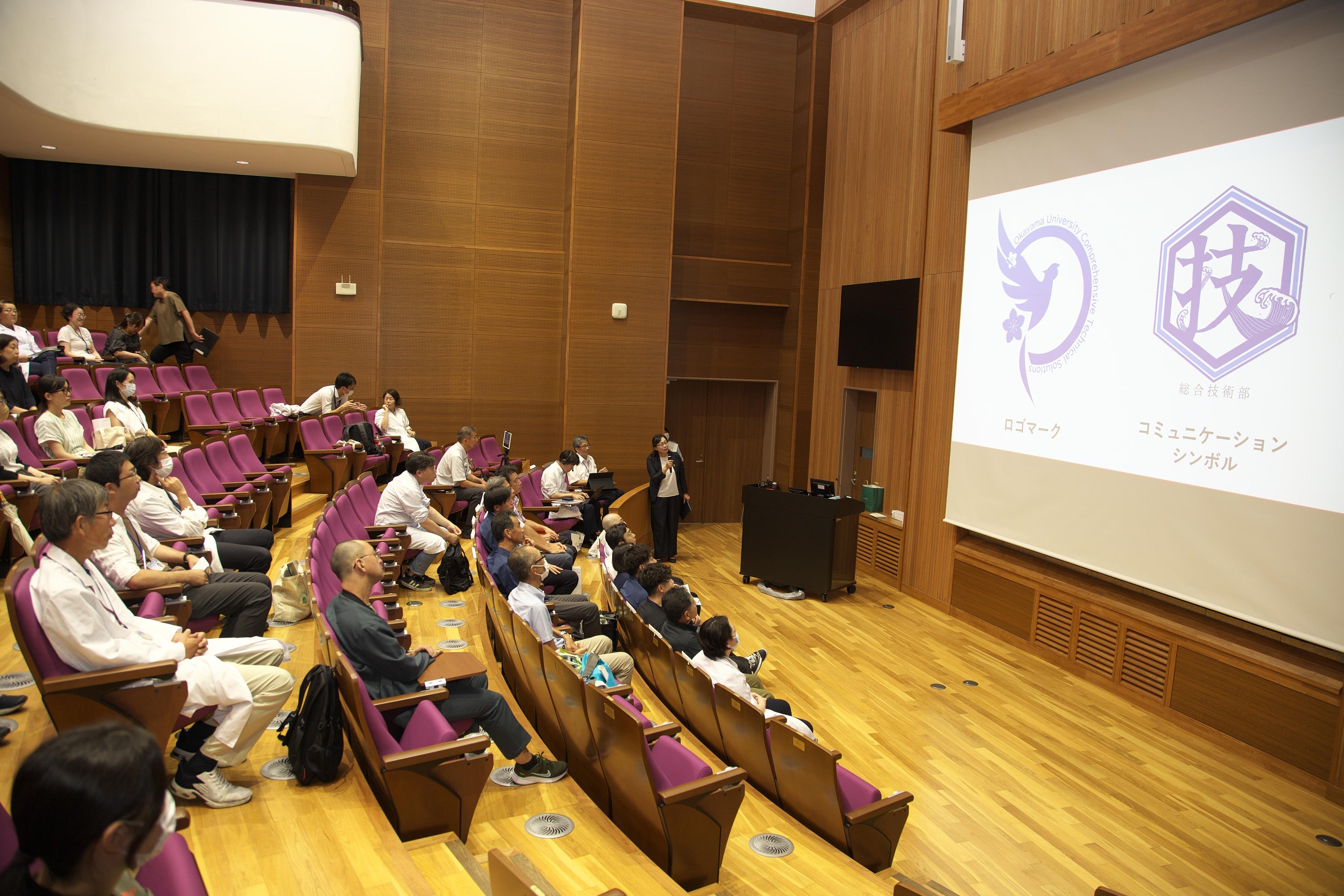 同部は、これまで各部署において個別に配属されていた教育研究系技術職員を一元化し、2023年度から新たにスタートした80人を超える技術者集団です。第2回の今回は、同部のほかに研究・イノベーション共創機構や研究協力課などの教職員に加え、現在、相互受入研修を実施している津山工業高等専門学校の技術職員も含めた76人(内オンライン22人)が参加しました。