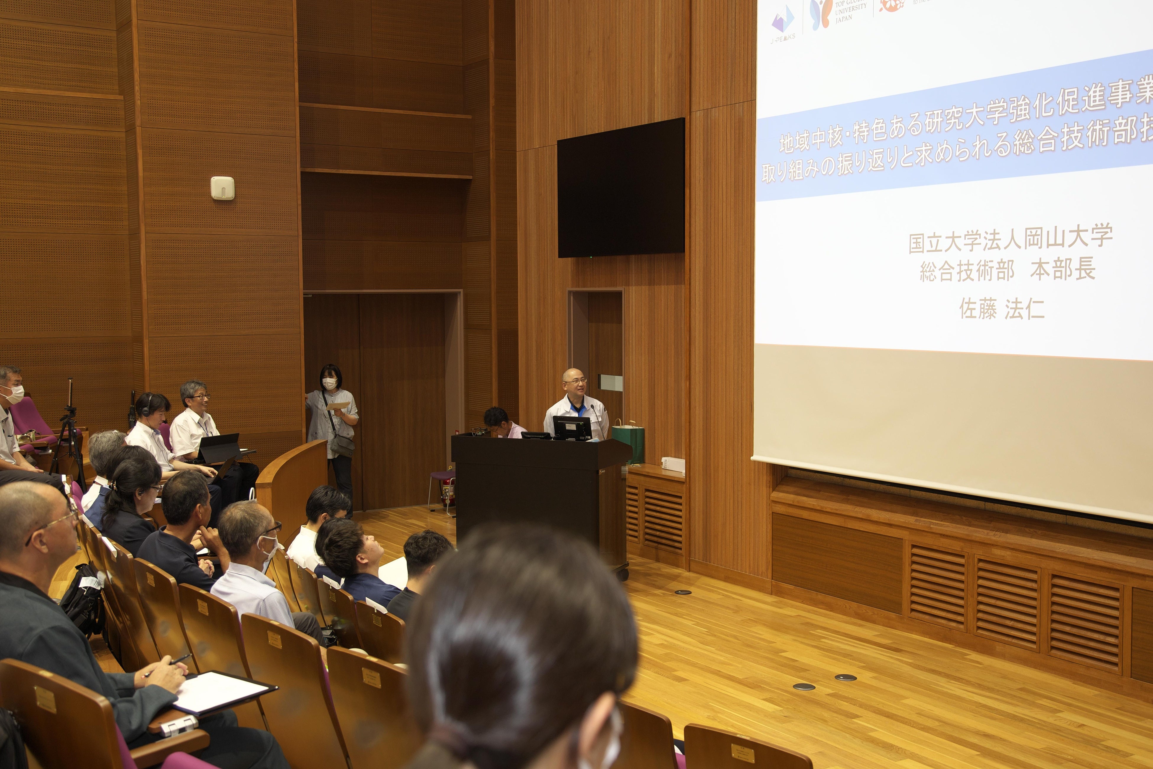 講演では、総合技術部本部長の佐藤法仁副理事(研究・産学共創総括担当)・副学長(学事担当)・技術副総監・上級URAから、「地域中核・特色ある研究大学強化促進事業(J-PEAKS)の取り組みの振り返りと求められる総合技術部技術職員の高度化」についての講演があり、今後の技術職員の役割や期待について深い示唆がありました。