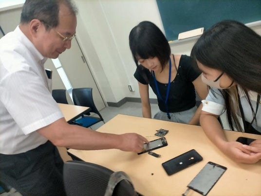永島講師の指導のもと、スマホの“解剖”に取り組む受講生