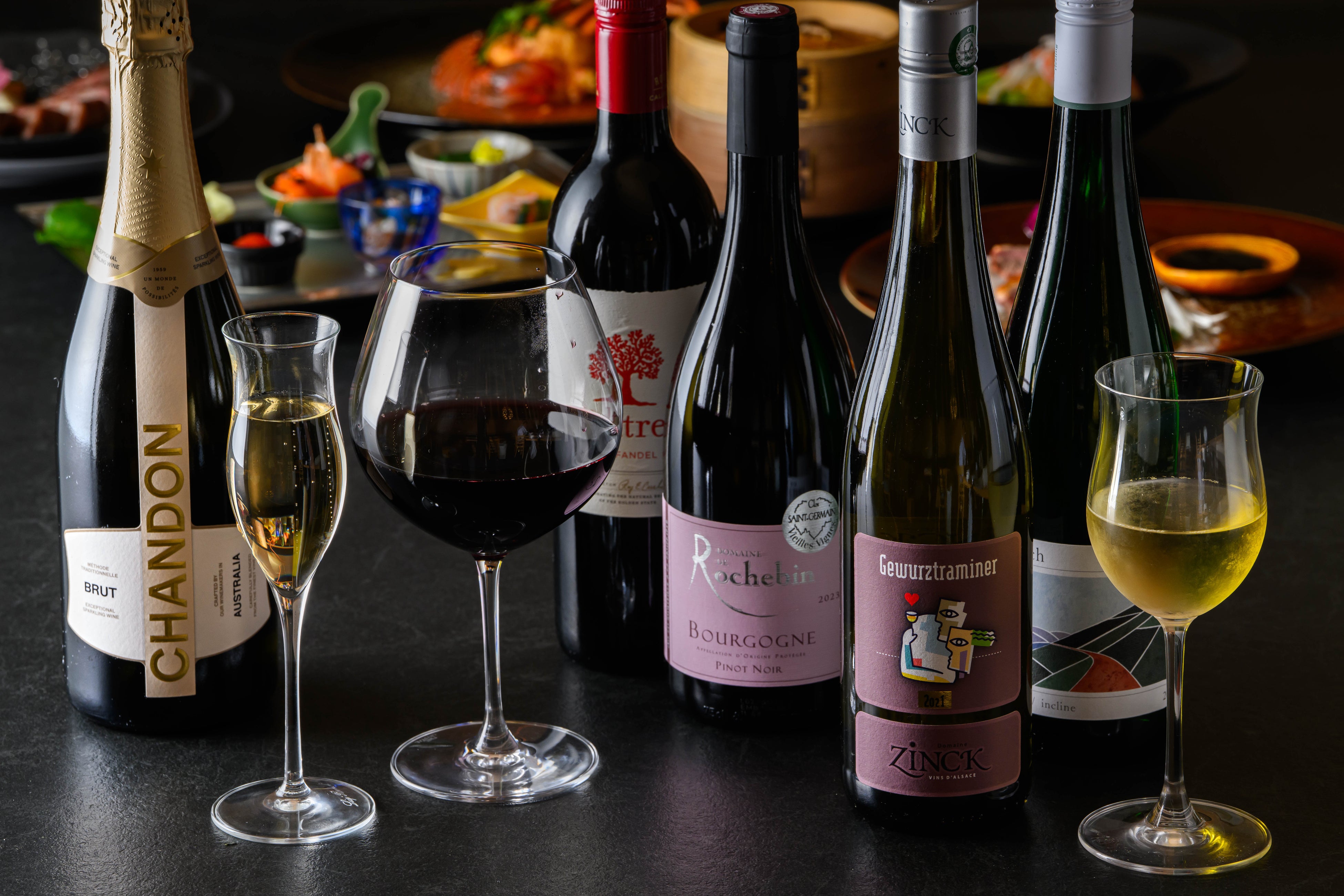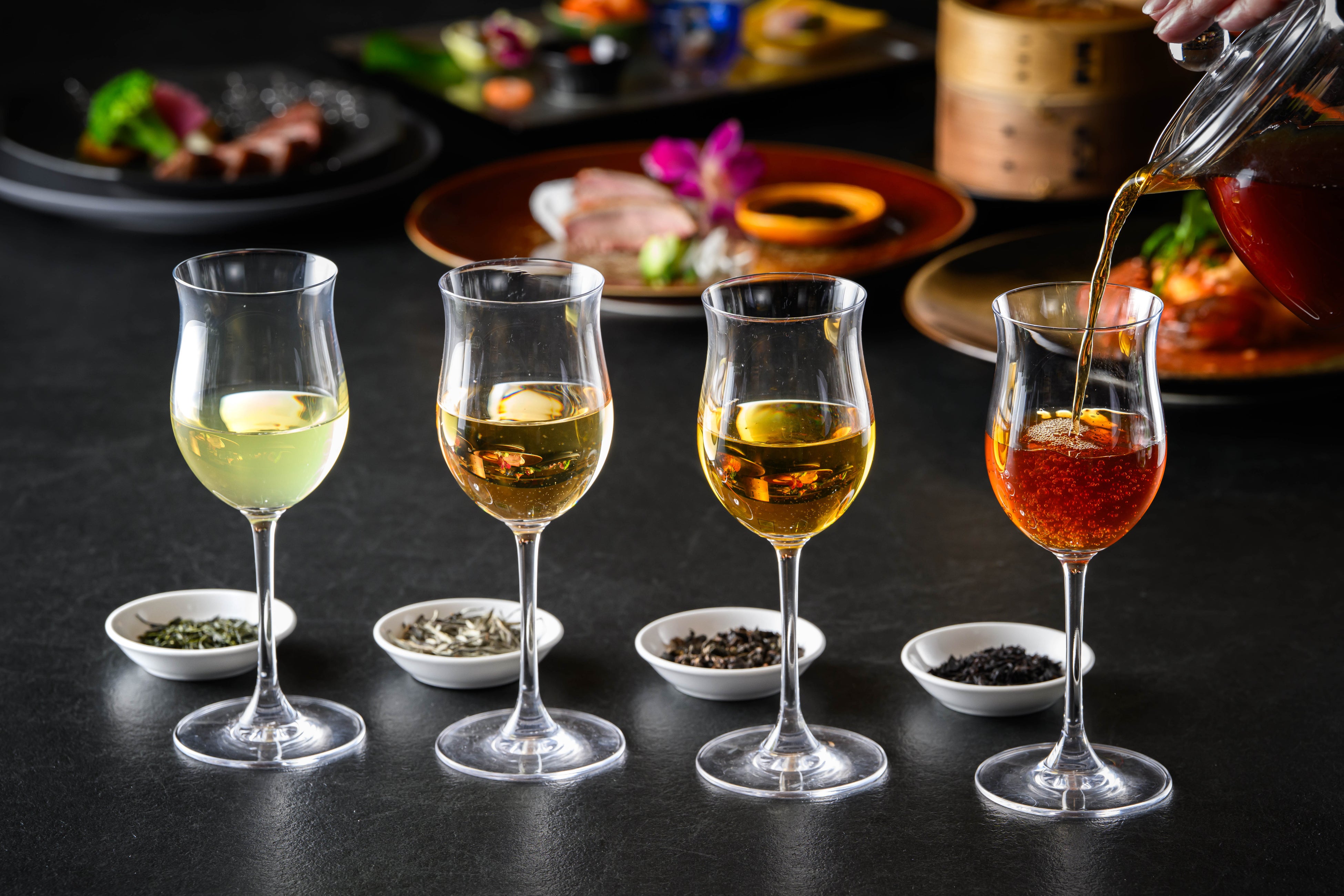 季節を感じる桃のお茶や味わい深い鉄観音茶など料理に合わせた中国茶とのマリアージュや、ソムリエセレクトのワインとのマリアージュもご用意しております。