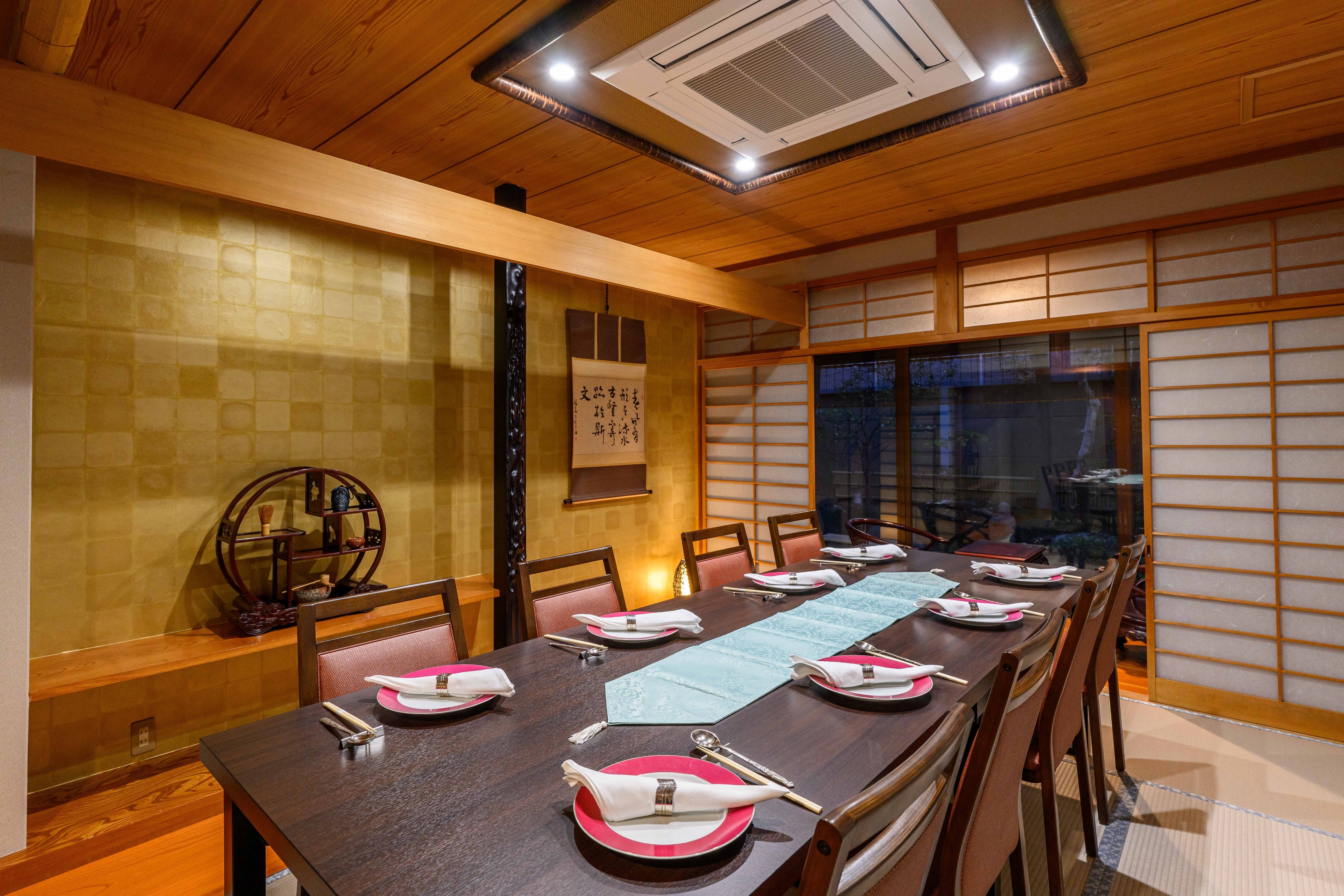 今回のリニューアルでは、奈良の恵みを味わう大和肉鶏やヤマトポークを使用した酢豚をご用意いたしました。特に、希少な奈良の食材を取り入れた最上級コース「玄武」(20,000円)では、奈良県御所市の葛城山麓で飼育された合鴨「倭鴨(やまとがも)」を使用し、料理長が数日かけて仕込んだ自家製北京ダックを味わえます。また中国茶やワインのマリアージュも取り揃え、料理の魅力を一層引き立てます。レストランは、長年親しまれてきた中華円卓式掘り炬燵の個室を着物の方やビジネスの接待などでもご利用しやすいテーブル・椅子席へと刷新しました。庭園に囲まれた日本家屋の建物は、和の趣を大切にした空間設計で、静かで上品な雰囲気を演出。どの個室からも日本庭園を眺めながら、季節の移ろいを感じることができます。