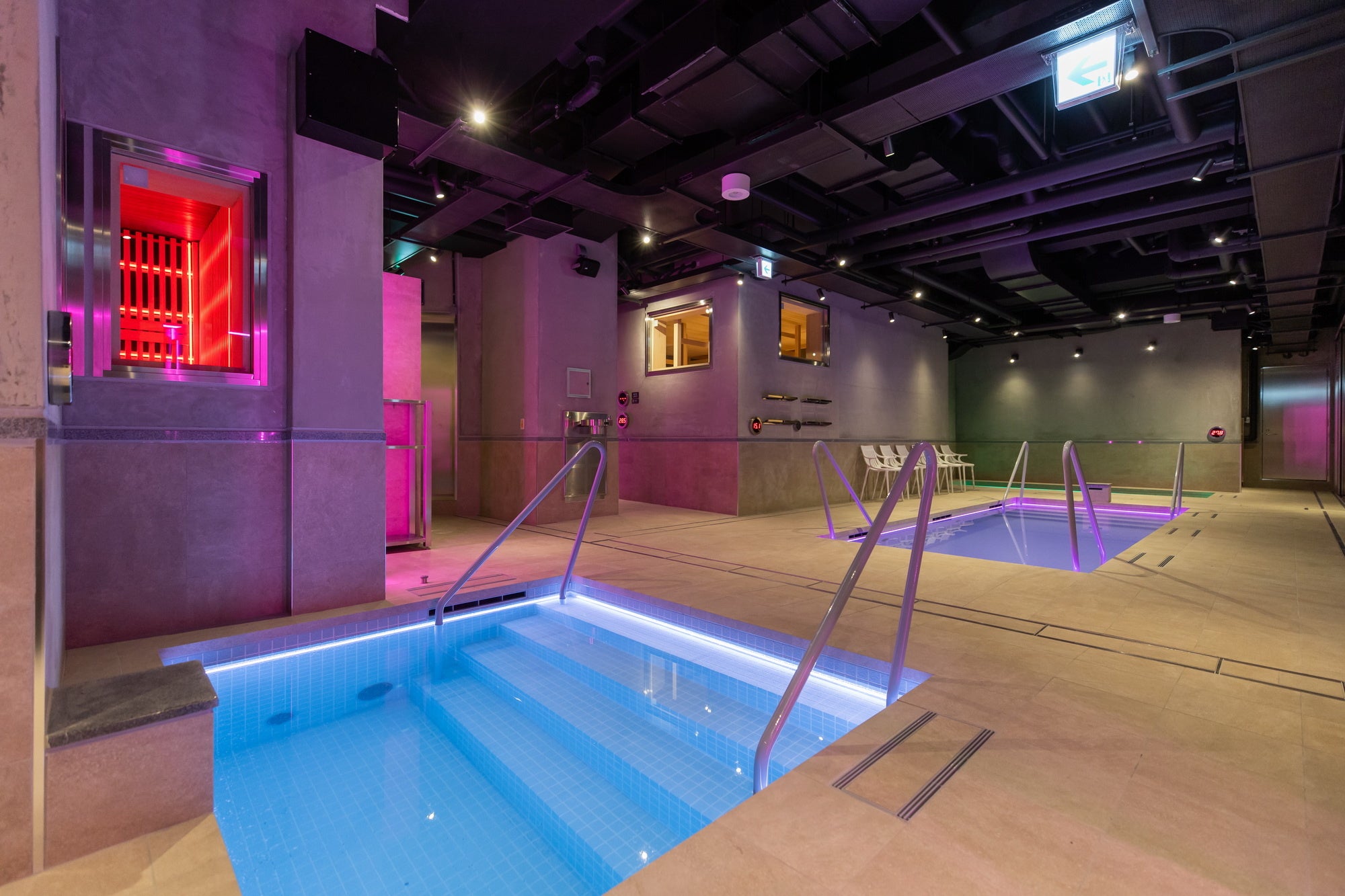 構造はもちろん照明や音楽など、様々な演出を施した5つのサウナと温度の異なる4つの水風呂がすべて男女同スペックのサウナ施設。地下水を汲み上げた温かいお風呂も備えます。