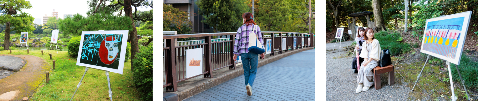 カフェやギャラリーが立ち並ぶ街並み、由緒ある日本庭園に、唯一無二の発想から生まれたアーティスト作品が溶け込みます。