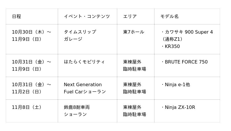 株式会社カワサキモータースジャパン(本社:兵庫県明石市、代表取締役社長:佐伯 健児)は、親会社であるカワサキモータース株式会社(本社:兵庫県明石市、代表取締役社長:伊藤 浩)が、東京ビッグサイト(江東区・有明)で、10月31日(金)から一般公開される「Japan Mobility Show 2025」*1に 出展する事をお知らせいたします。