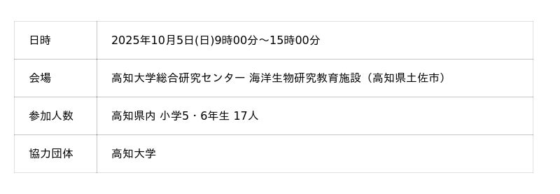 2025年10月5日(日) 【高知大学 総合研究センター 海洋生物研究教育施設(高知県土佐市)】