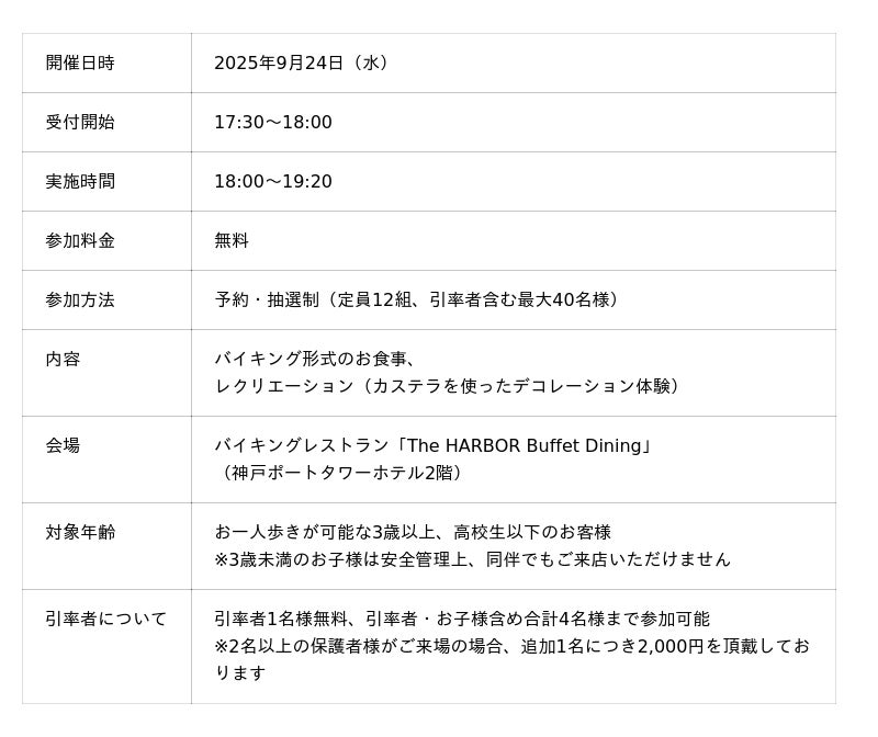 株式会社アベストコーポレーション(代表取締役:松山 みさお 以下、当社)は、当社が運営する神戸ポートタワーホテルにて、同じく神戸に本社を構える株式会社 文明堂神戸店(代表取締役社長:片山 智絵 以下、文明堂)と連携し、地域の子どもたちを対象とした「こども食堂」を2025年9月24日(水)に開催しました。