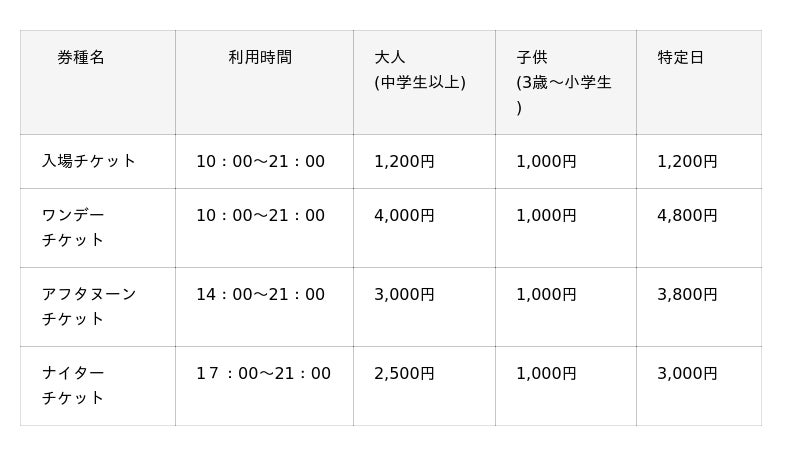 ※0~2歳までのお子さまは無料です。スノーパークもご利用いただけます。
