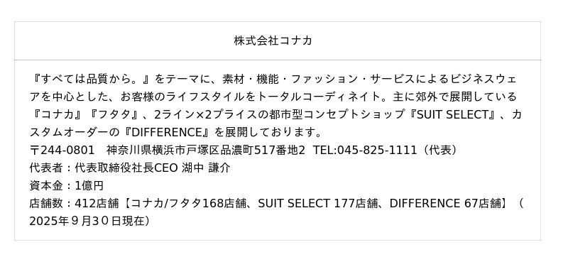 株式会社コナカでは、お客様の利便性と接客サービスの向上により、さらにショッピングを楽しんでいただけるよう今後も取り組んでまいります。