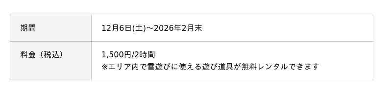 北海道ボールパークFビレッジでは12月1日(月)~2026年2月末(予定)までの期間、「F VILLAGE Snow Park」をオープンします。