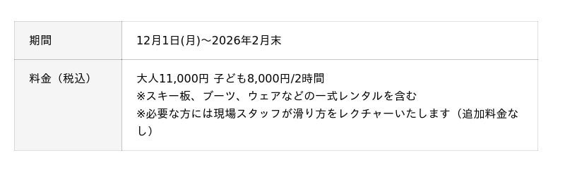 ※積雪状況その他の事情により、内容が一部変更となる可能性があります