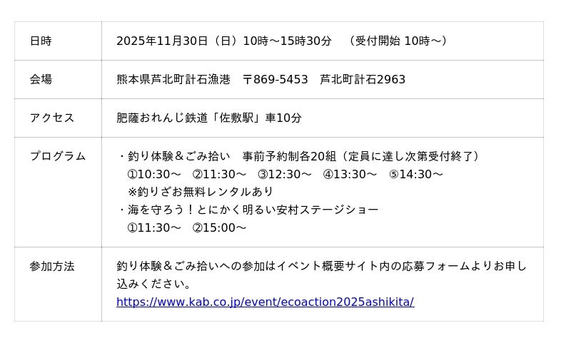 イベント概要サイト:https://www.kab.co.jp/event/ecoaction2025ashikita/