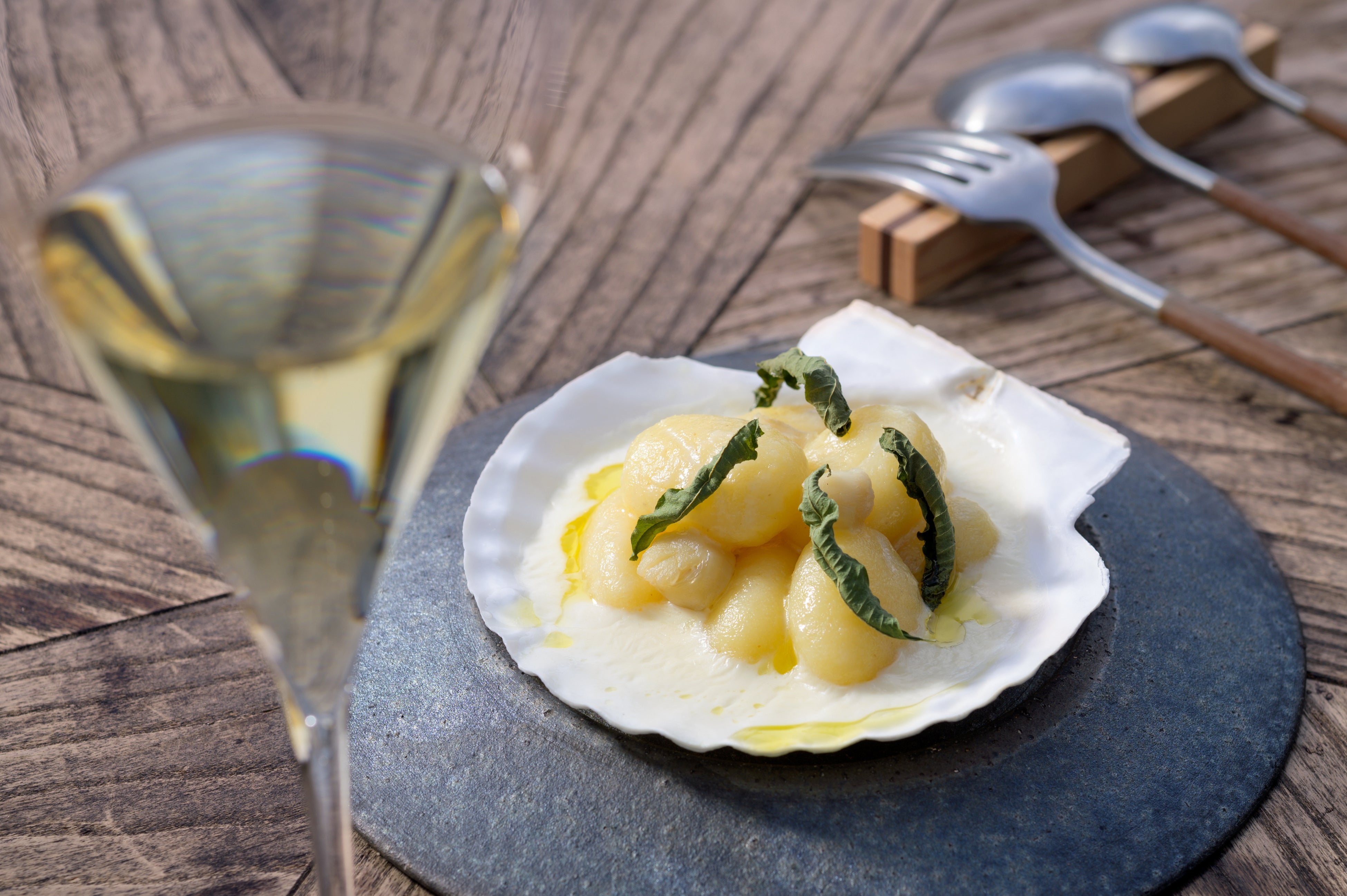 ・前菜「帆立貝のクリームニョッキ」× パイパー・エドシック・ドゥミ・ブテイユ