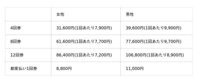 ピラティスレッスン料金案内
