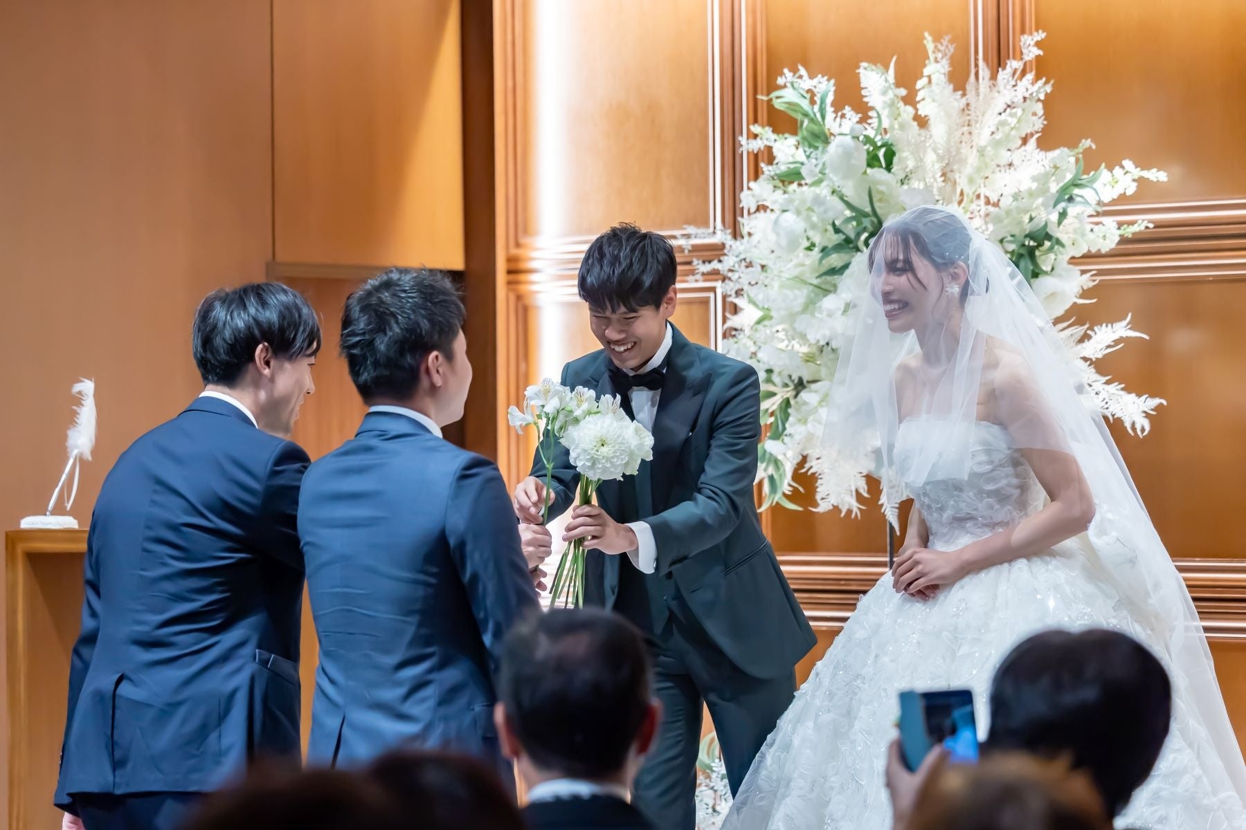 誓いのキス、誓いのハグ、ハイタッチ、指切りなど自由なスタイルで。