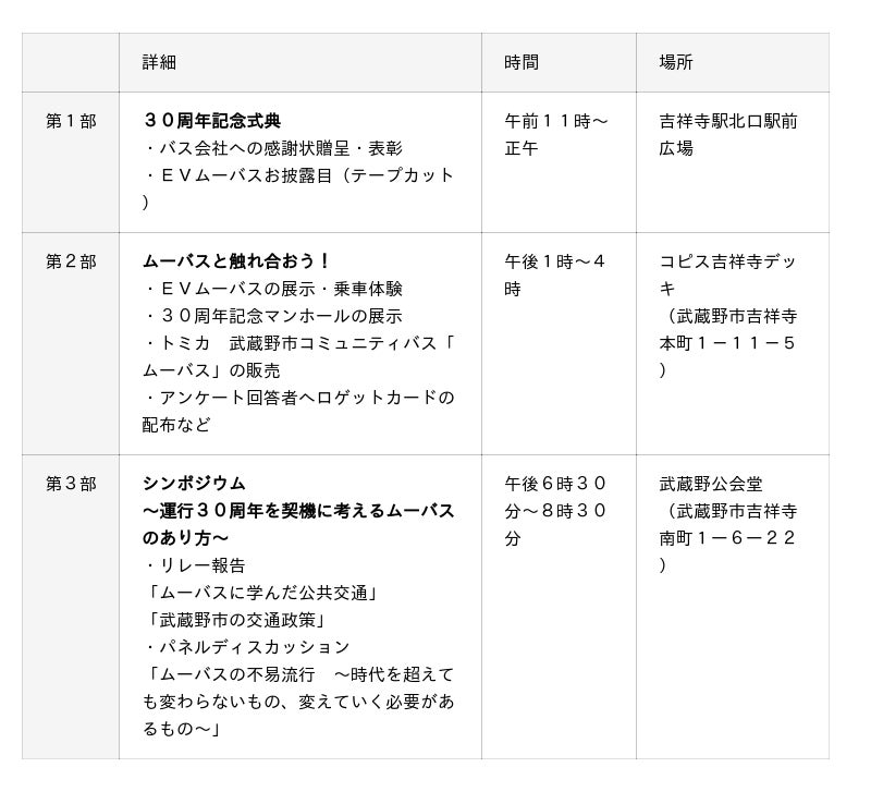 令和7年11月26日にムーバスが運行開始から30周年を迎えます。長年にわたり支えてくださったすべての皆さんに感謝を込めて、記念式典、イベント、シンポジウムを開催します。