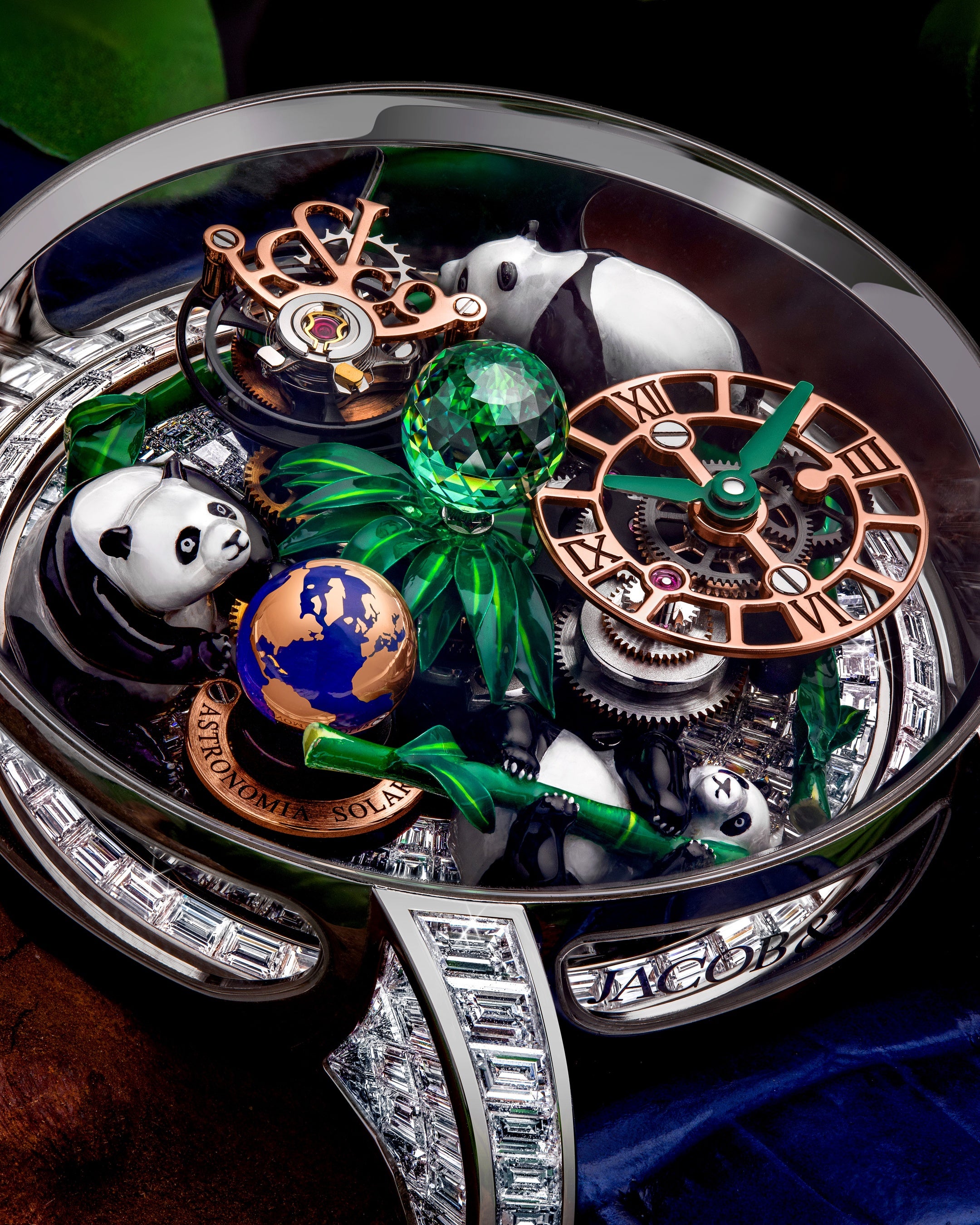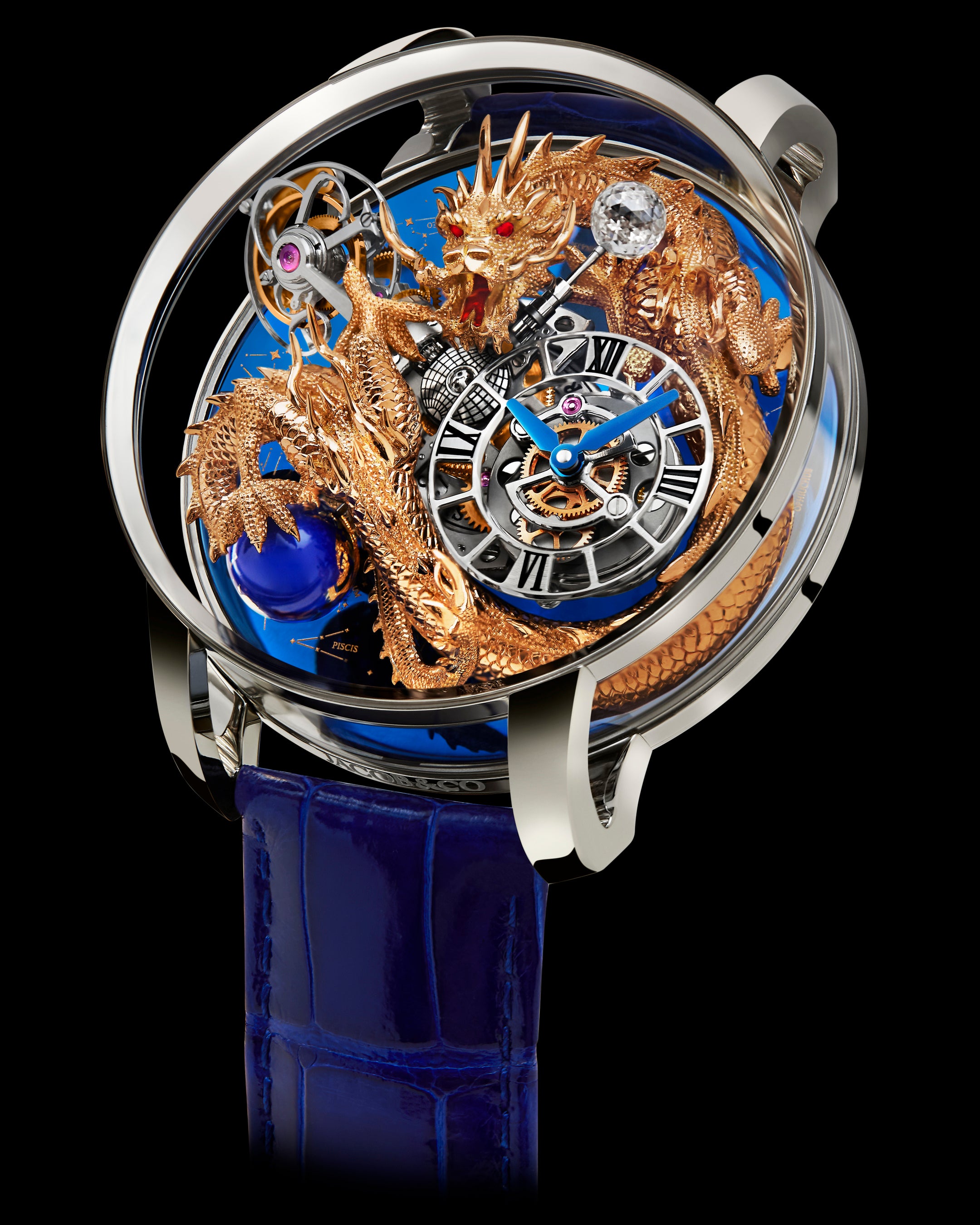 このような卓越したクラフトマンシップによって、アストロノミアは単なるメカニズムの集合体ではなく、立体芸術として完成します。創造のイメージを現実の造形へと昇華させる力こそ、ジェイコブ&コーが誇る「アート」としてのアストロノミアの真髄です。