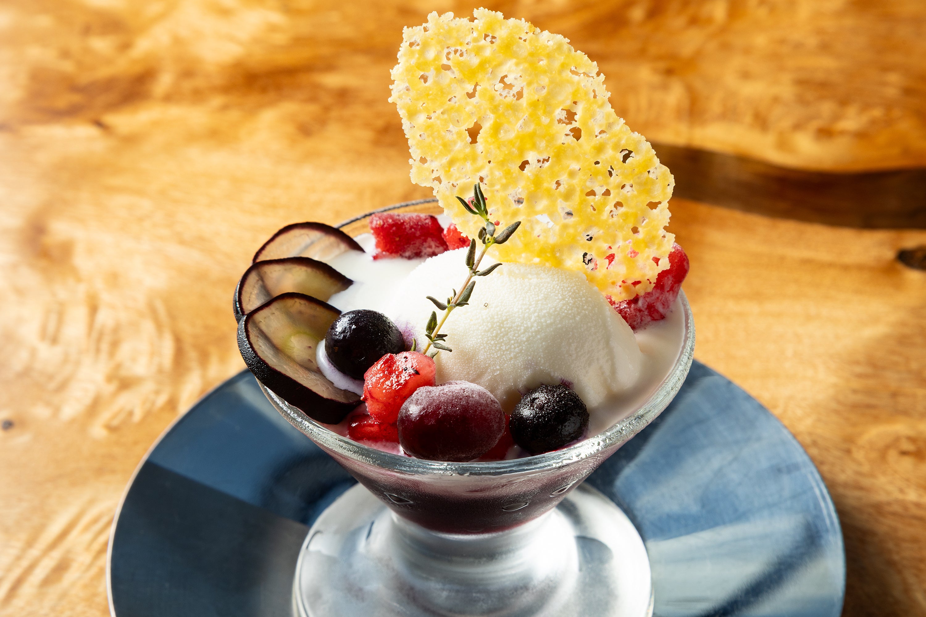 [いちじく、キウイ、バナナ、ワイルドブルーベリーソース]
