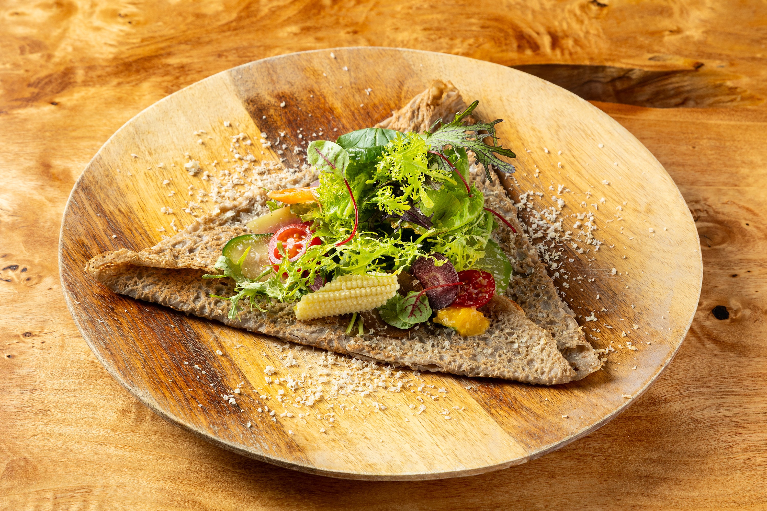 1.プラントベースエッグと大豆のボロネーゼのデュクセルガレット(VEGAN/ヴィーガン)