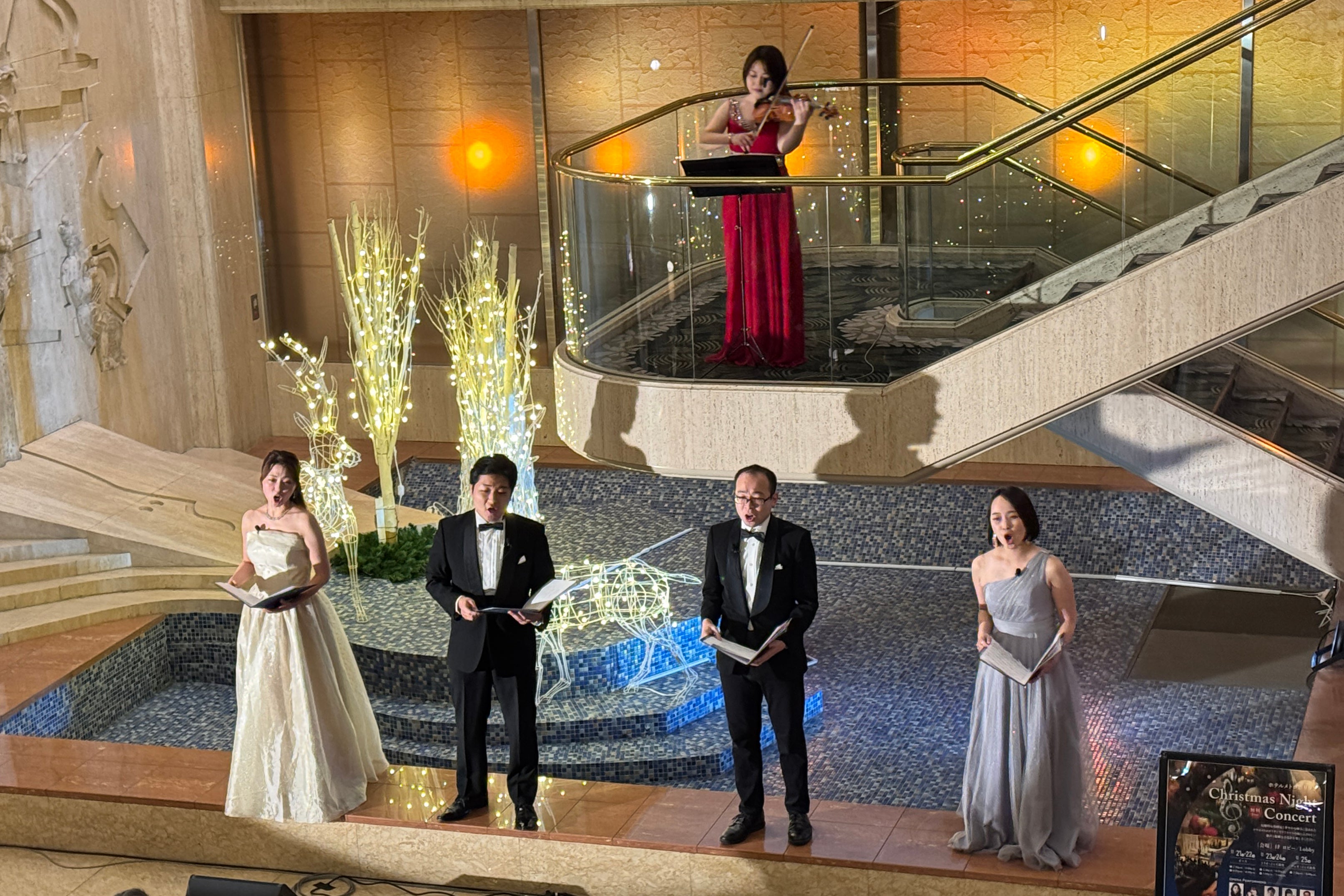 幻想的な雰囲気と華やかさに包まれたホテルメトロポリタンのロビーで、クリスマスならではのオペラやトリオが奏でる優雅な演奏の音色をお楽しみください。