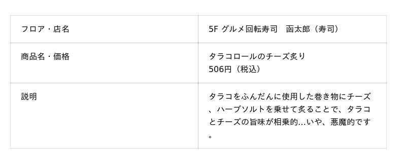 タラコロールのチーズ炙り ※イメージ