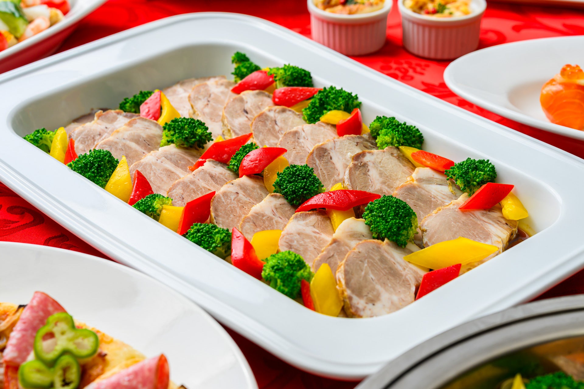 ■ ライブキッチンで体感する臨場感と香ばしい美味しさライブキッチンでは「能登豚のローストポーク」や「厳選牛ロースステーキ」、「ケイジャンスパイスチキン」をお客様の目の前で焼き上げます。香ばしい香りと焼きたての迫力が、クリスマス気分を一層高めます。素材の旨みを最大限に引き出す絶妙な火入れと、ホテルならではの上品な味わいが調和した自信作です。