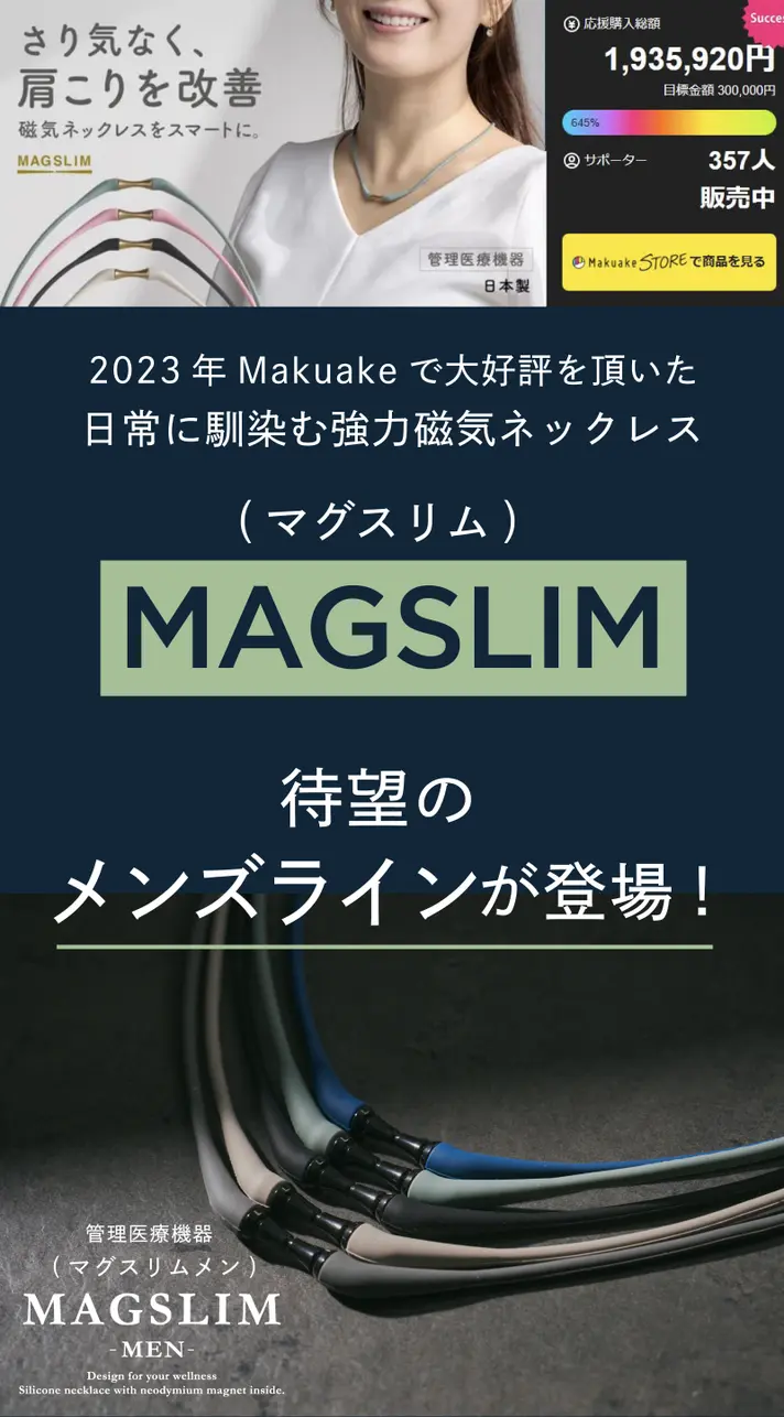 2023年に発売した女性向け磁気ネックレス「MAGSLIM」は、「さりげなくスマートに肩こりをケアできる」と多くの女性ユーザーに支持され、順調に販売数を伸ばしてきました。