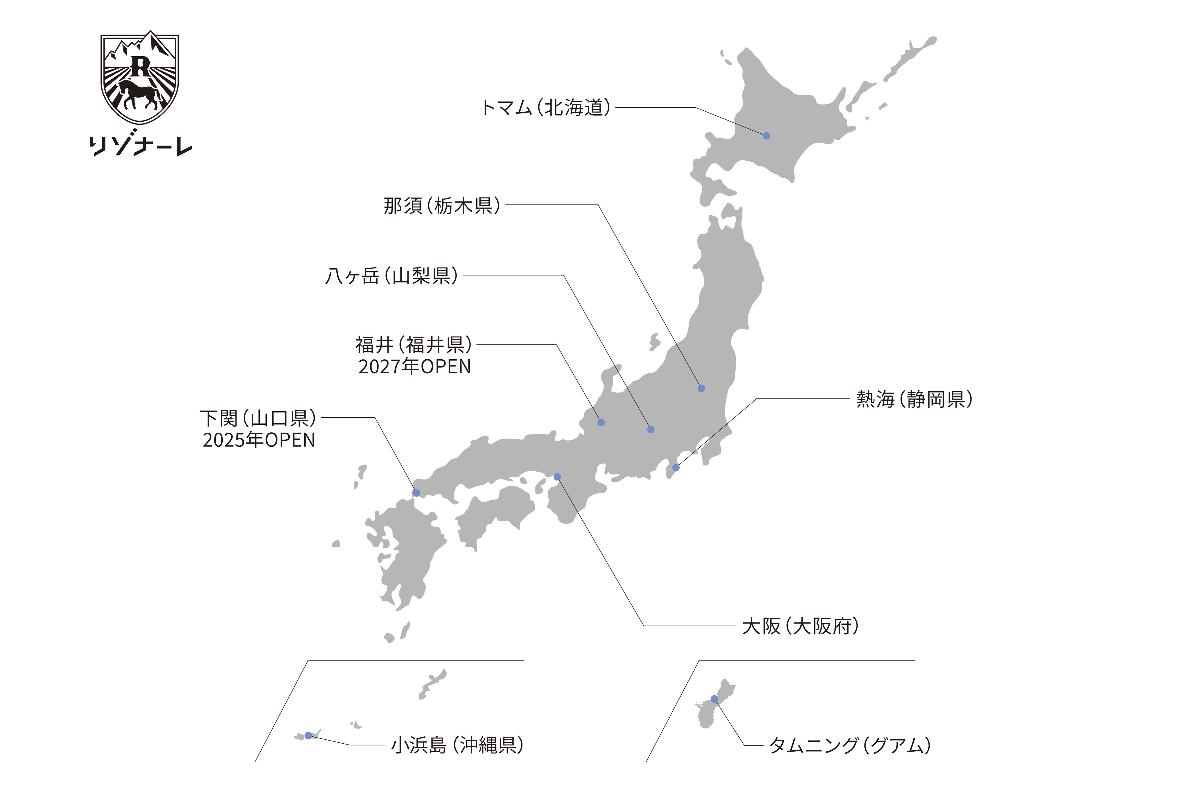 コンセプトは、夢中になって楽しみ尽くす「PLAY HARD」。土地の特性を活かした空間デザインや豊富なアクティビティ、地域や季節ならではの体験を通して、訪れる方々に想像を超える滞在と心に残る旅を提供します。現在、国内外で7施設を展開しており、2025年には九州・山口エリア初進出となる「リゾナーレ下関」、2027年には「リゾナーレ福井」の開業を予定しています。
