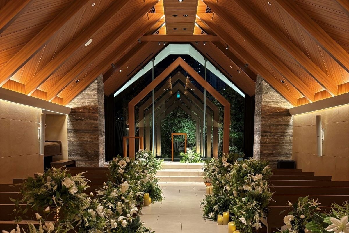 ⇒レストランでプロポーズディナーお食事後、緑あふれる木目調の温かい雰囲気のチャペルにて貸し切りでご利用いただけるプラン