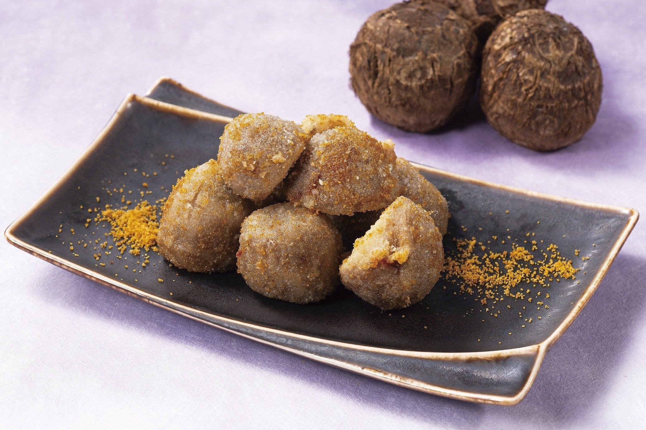 上庄さといも唐揚げ からすみ掛け 690円上庄さといもをめんつゆで味付けし、唐揚げにしました。仕上げにからすみを掛けることでさらに味わい深くなっています。