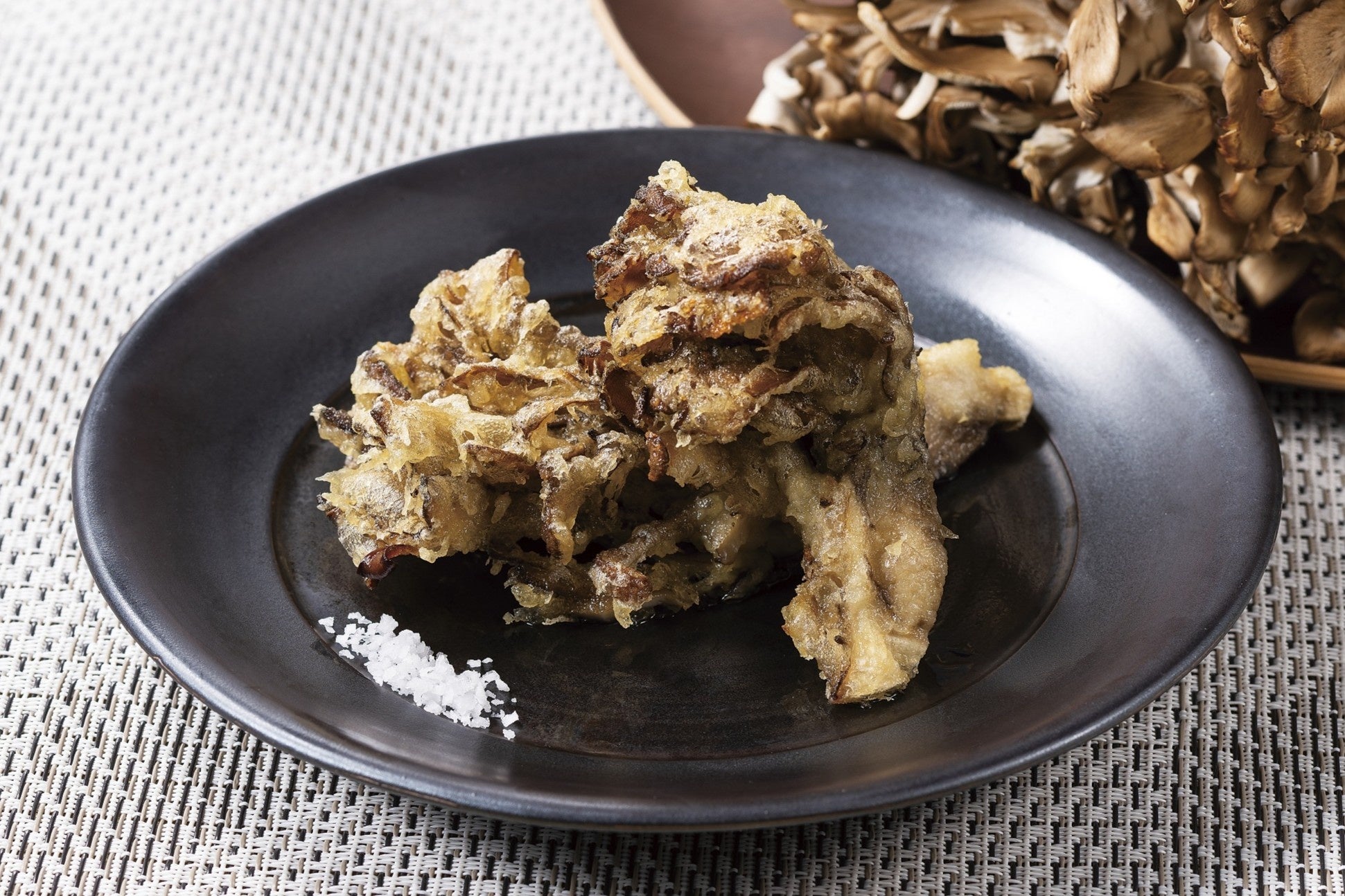 九頭竜まいたけの天ぷら 770円サクサクとした軽い衣の中に、九頭竜まいたけの豊かな香りと旨味を閉じこめました。