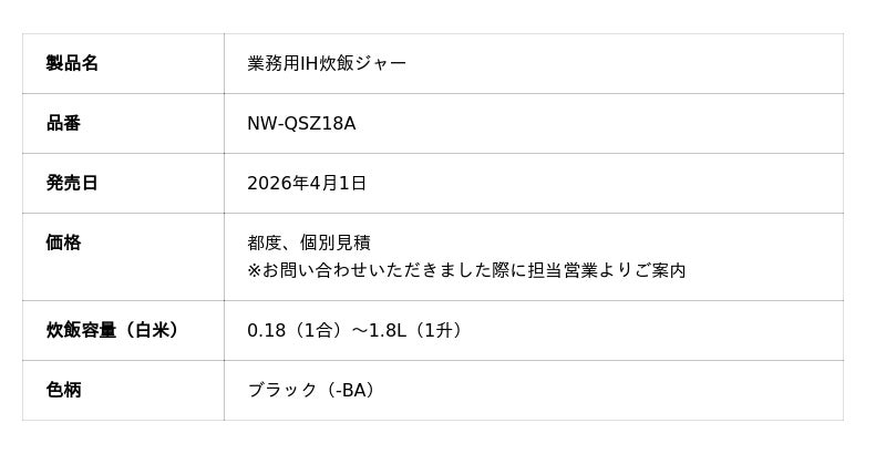 【関連リリース】業務用IH炊飯ジャー(NW-QSZ18A)