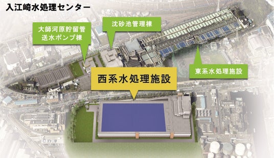 入江崎水処理センターは、昭和36年9月に運転を開始した神奈川県下で最も古い下水処理場です。この水処理センターでは、平成15年度から老朽化した施設の再構築にあわせて、「環境改善」「エネルギー活用」「資源循環」の3つの環境対策を柱とした高度処理施設の建設を進め、平成31年3月に「西系水処理施設」の再構築事業が完了しました。また、水処理センター内にある「かわさき下水道広報施設ワクワクアクア」では、太陽光発電設備の設置状況や発電状況を見学することができます。