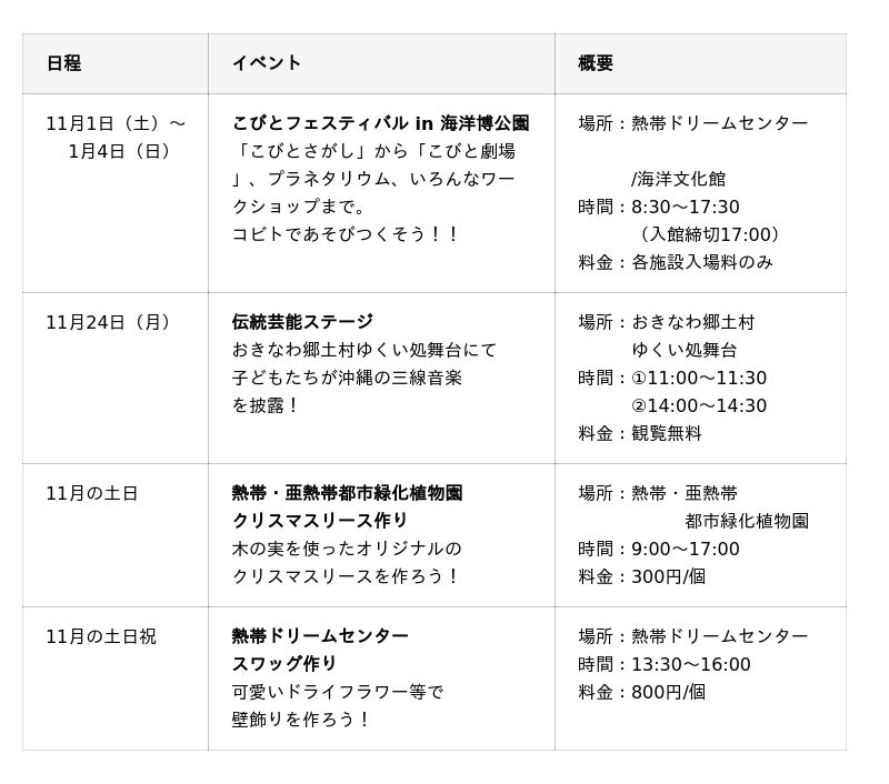 そのほか、植物観察会や美ら海オトナ塾など、楽しいイベントが盛りだくさん!