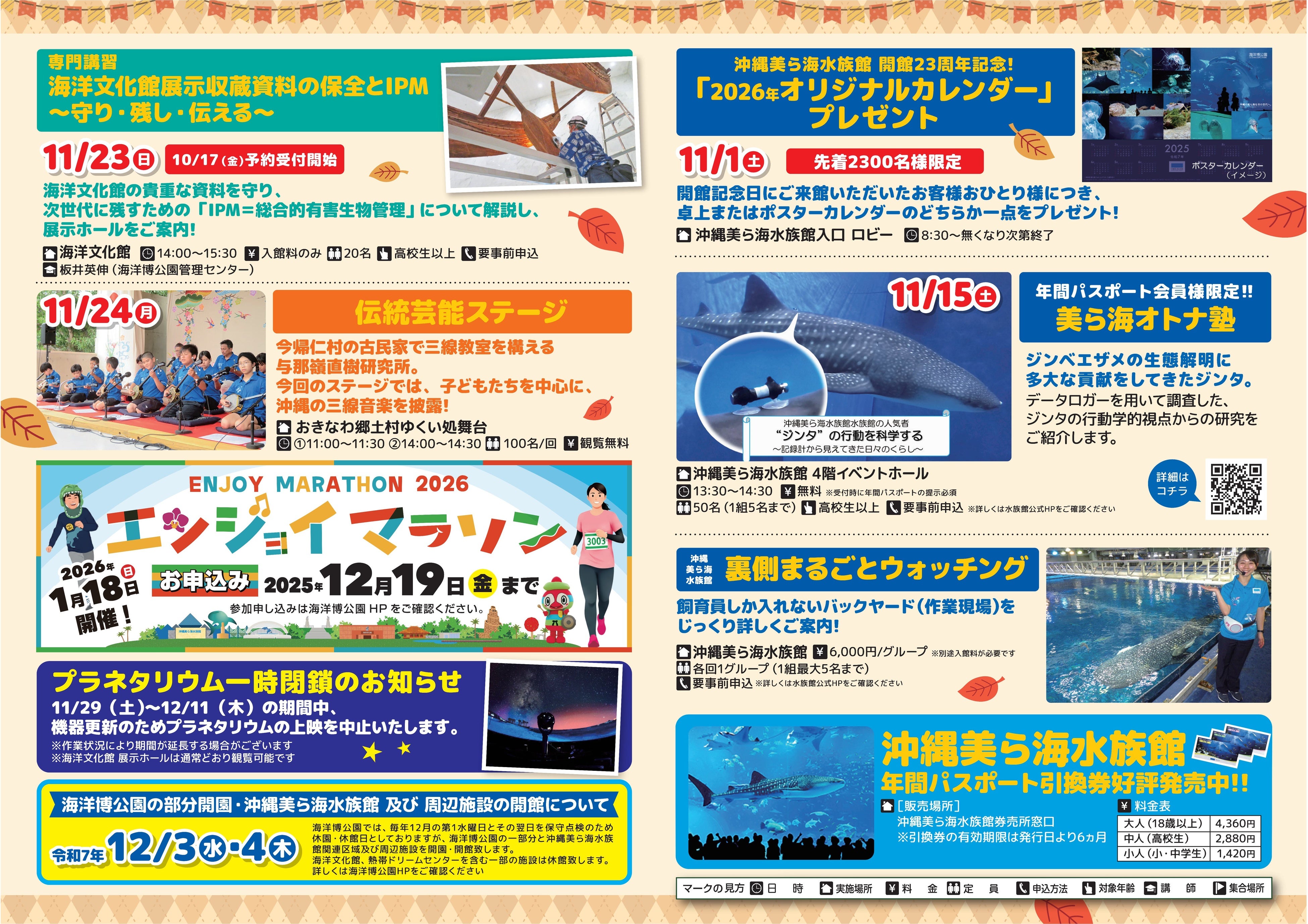 海洋博公園では、園内の最新情報やイベント情報をお届けする広報誌『美ら海通信』2025年11月号を発行いたしました。本号では、海洋博公園で楽しめる様々なプログラムを紹介しております。